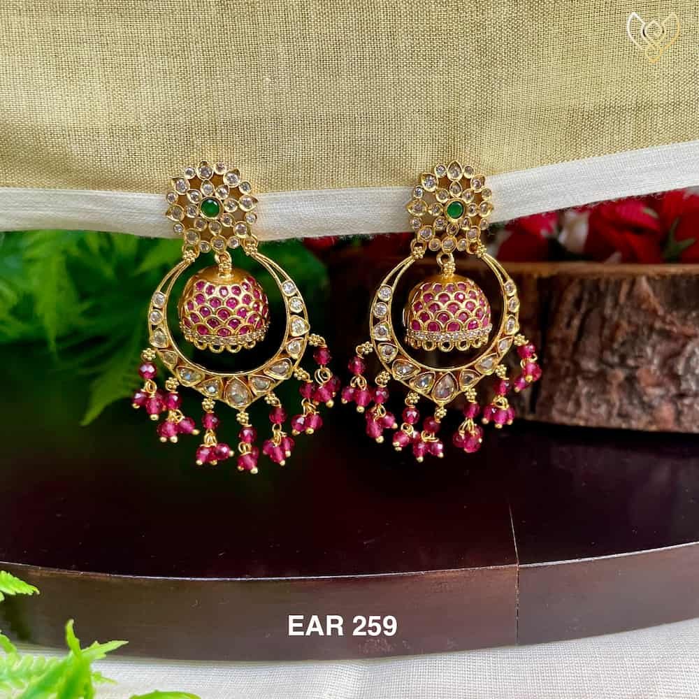 Premium antique chandbali earrings in kemp designlength 5.5cmwidth 2.6cm