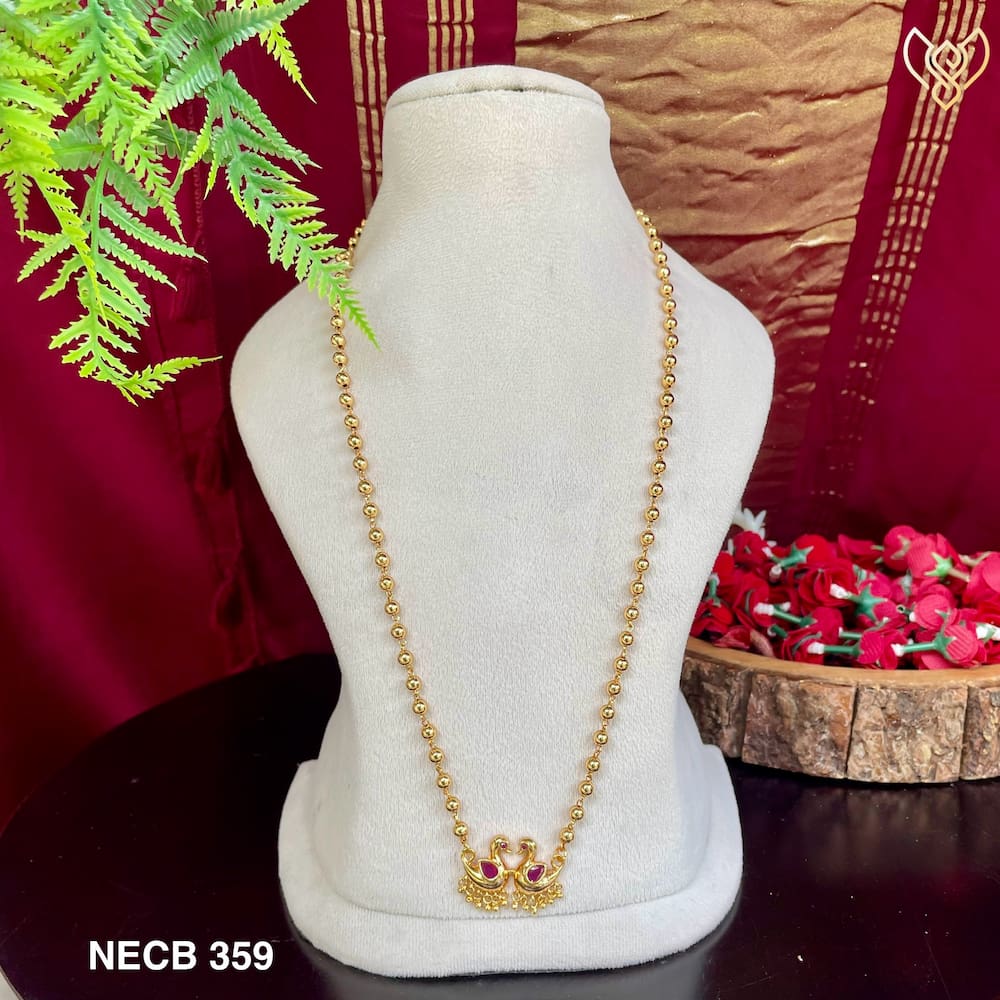 Gold plated 24inch manimala with swan (arayannam) pendant long haram