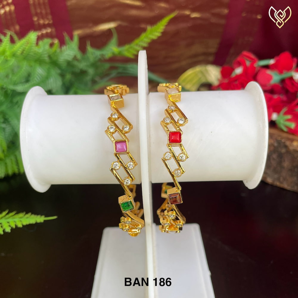 Premium antique simple ad navratna bangle set of 2