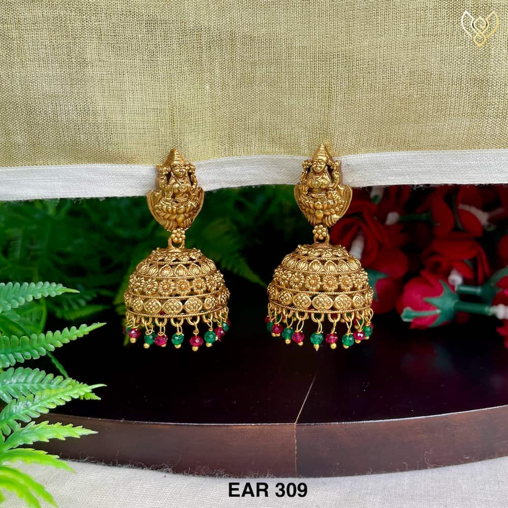 Antique simple lakshmi jhumka with ruby and ruby green hangings