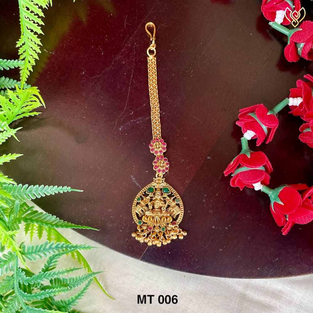 Antique lakshmi mang tikka in ruby green stones