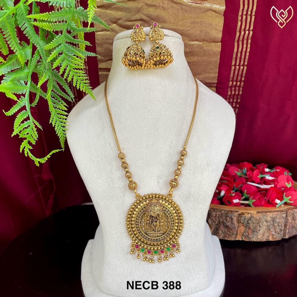 Antique round krishna radha pendant with koda design short haram with jhumka