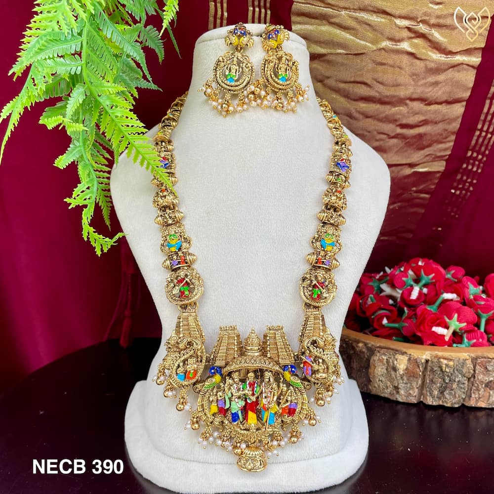 Antique siva parvati kalayana haram with meenakari work and earrings